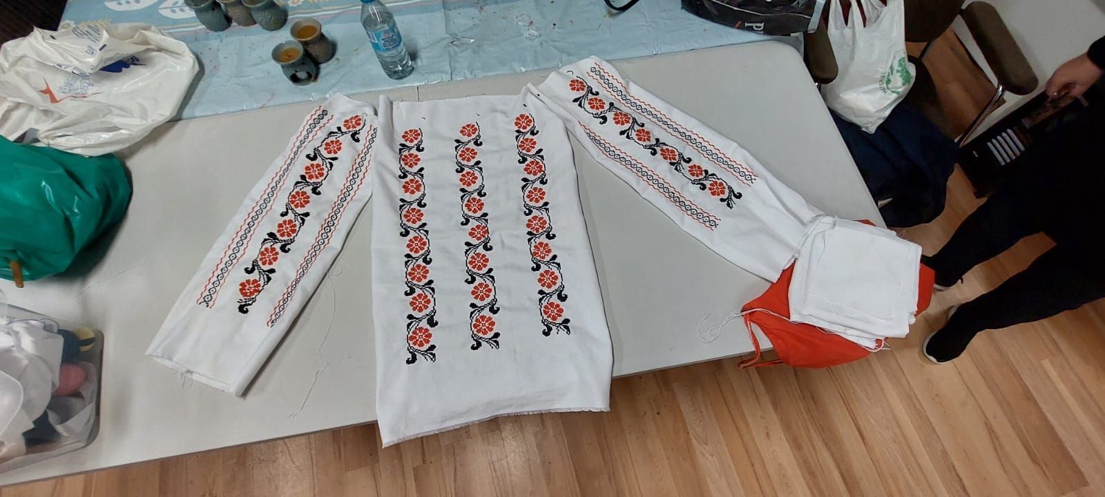 🔹 Atelierul de cusut: Cu răbdare și migală, prima ie a început să prindă contur. Următorul pas în finalizarea acesteia este tivirea cu găuri, un detaliu esențial pentru frumusețea și autenticitatea cămășii tradiționale românești.