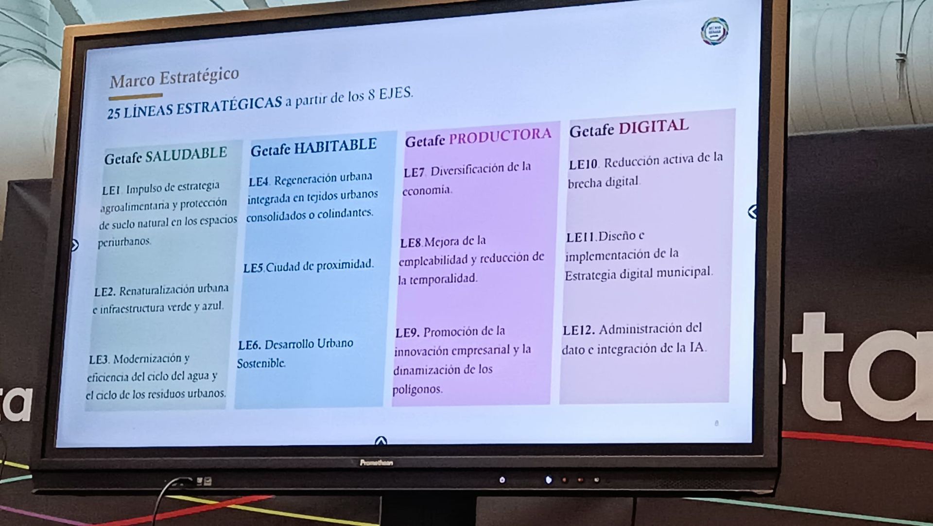 - 8 pilares de desarrollo para un Getafe: saludable, habitable, productivo, digital, innovador, verde, transitable e igualitario.