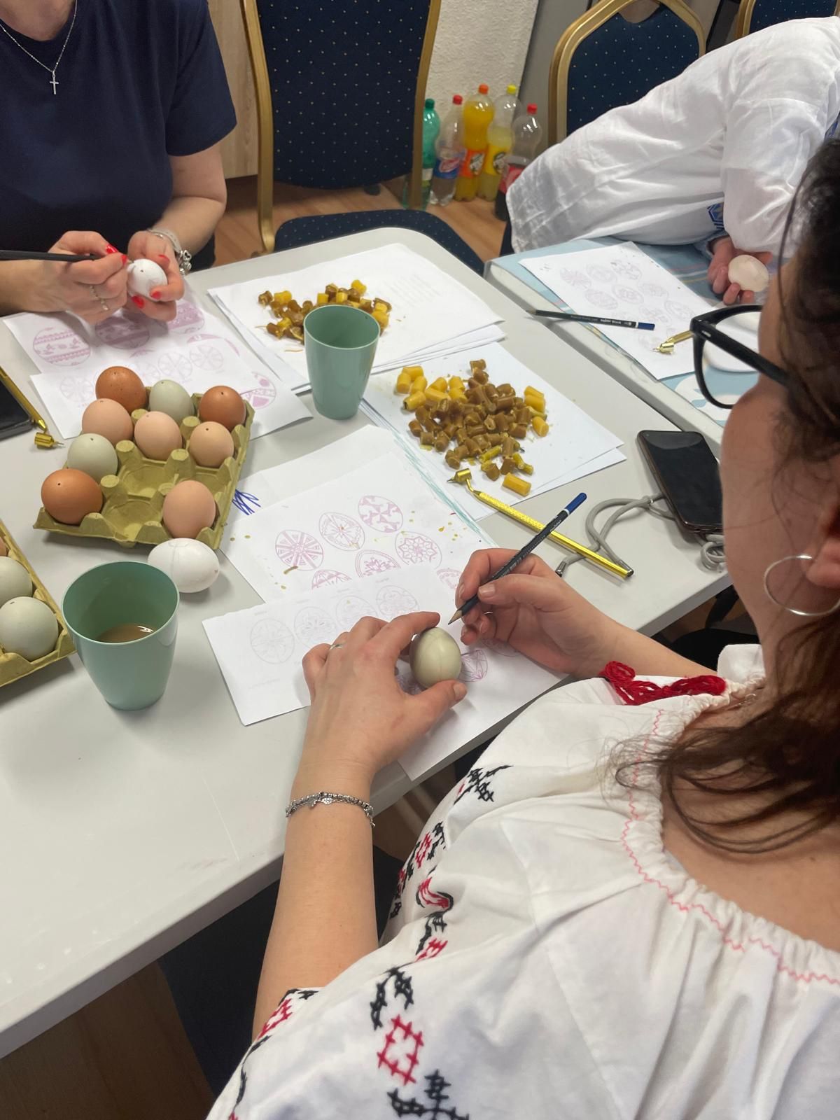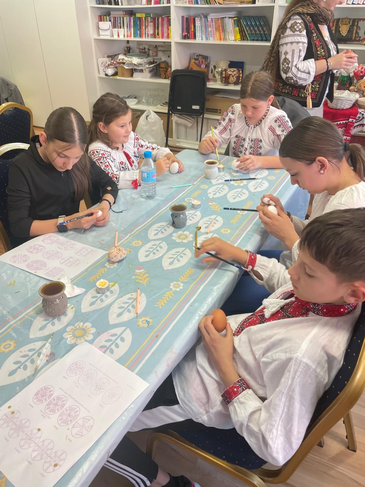 El sábado 5 de abril, bajo la guía de la escritora y artista plástica Ana Ropot, niños y padres, vestidos con trajes tradicionales y evocando la atmósfera del antiguo pueblo rumano, participaron en el taller de decoración de huevos de Pascua.