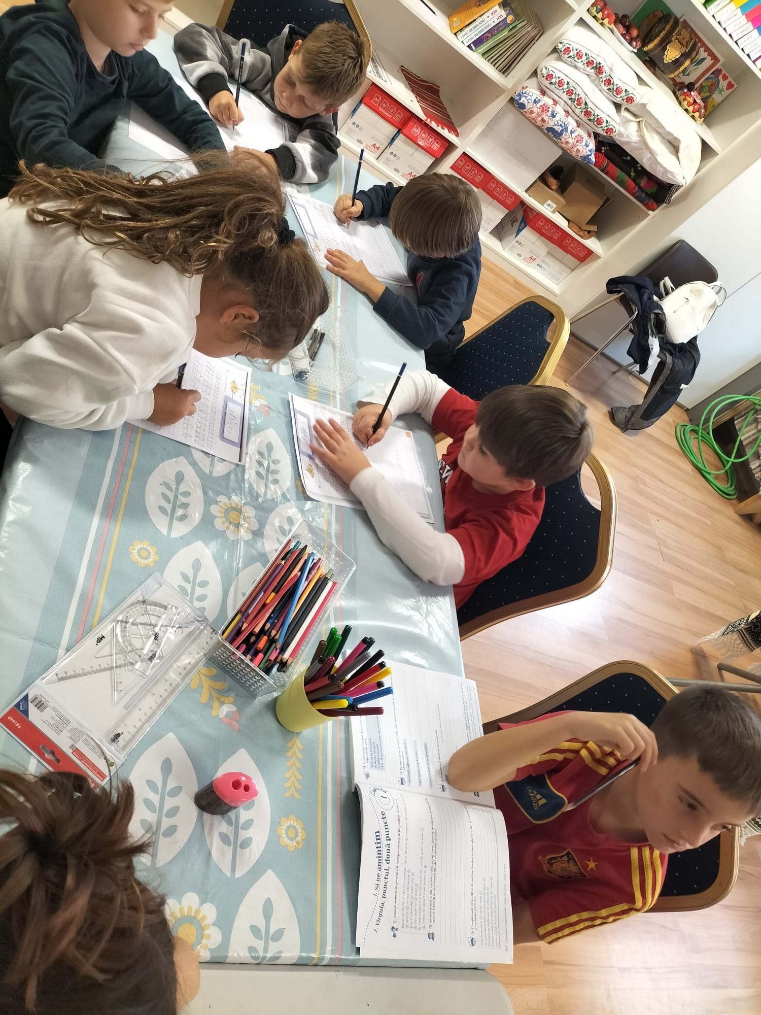 • Grupa de vârstă 9-11 ani a lucrat în caietele auxiliare de clasa a 4-a, concentrându-se pe semnele de punctuație: virgula, punctul și două puncte.