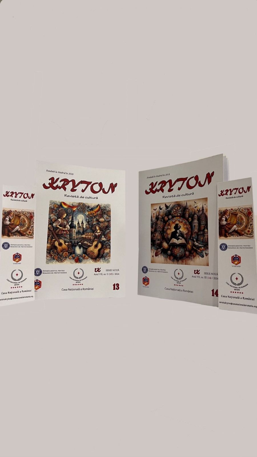 El martes, 29 de octubre de 2024, a las 18:00, tuvo lugar la presentación oficial de los números II y III de este año de la revista de cultura Kryton, fundada en Madrid en 2018. El editor de la revista es Casa Nacional de Rumanía - Casa Nacional de Rumania en Getafe, y su impresión cuenta con el apoyo del Departamento para los Rumanos en el Extranjero: https://dprp.gov.ro/web/