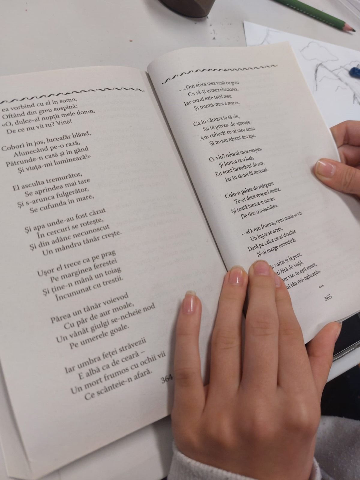 Los niños tuvieron la oportunidad de familiarizarse con una de las obras más importantes de la literatura rumana, "Luceafărul" de Mihai Eminescu. A pesar de que el poema tiene 99 estrofas, los pequeños lograron entender los significados profundos de la obra y expresaron sus impresiones. Además, se les animó a dejar volar su imaginación y a dibujar la primavera tal como la ven ellos, capturando la esencia de esta estación desde una perspectiva personal y artística.